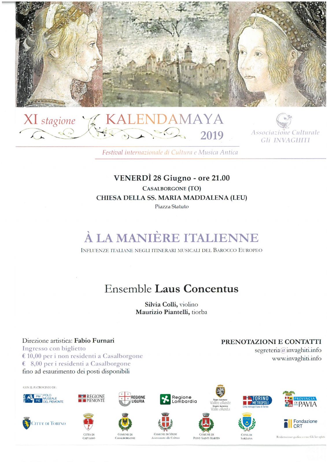 Nell'ambito dell' XI edizione di Kalendamaya - festival internazionale di Cultura e Musica Antica , Casalborgone ospiterà nella Chiesa di Santa Maria Maddalena nel centro storico un interessante concerto.