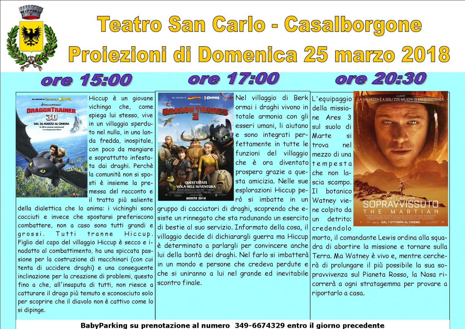 domenica 25 marzo 2018 tre proiezioni da non perdere:
