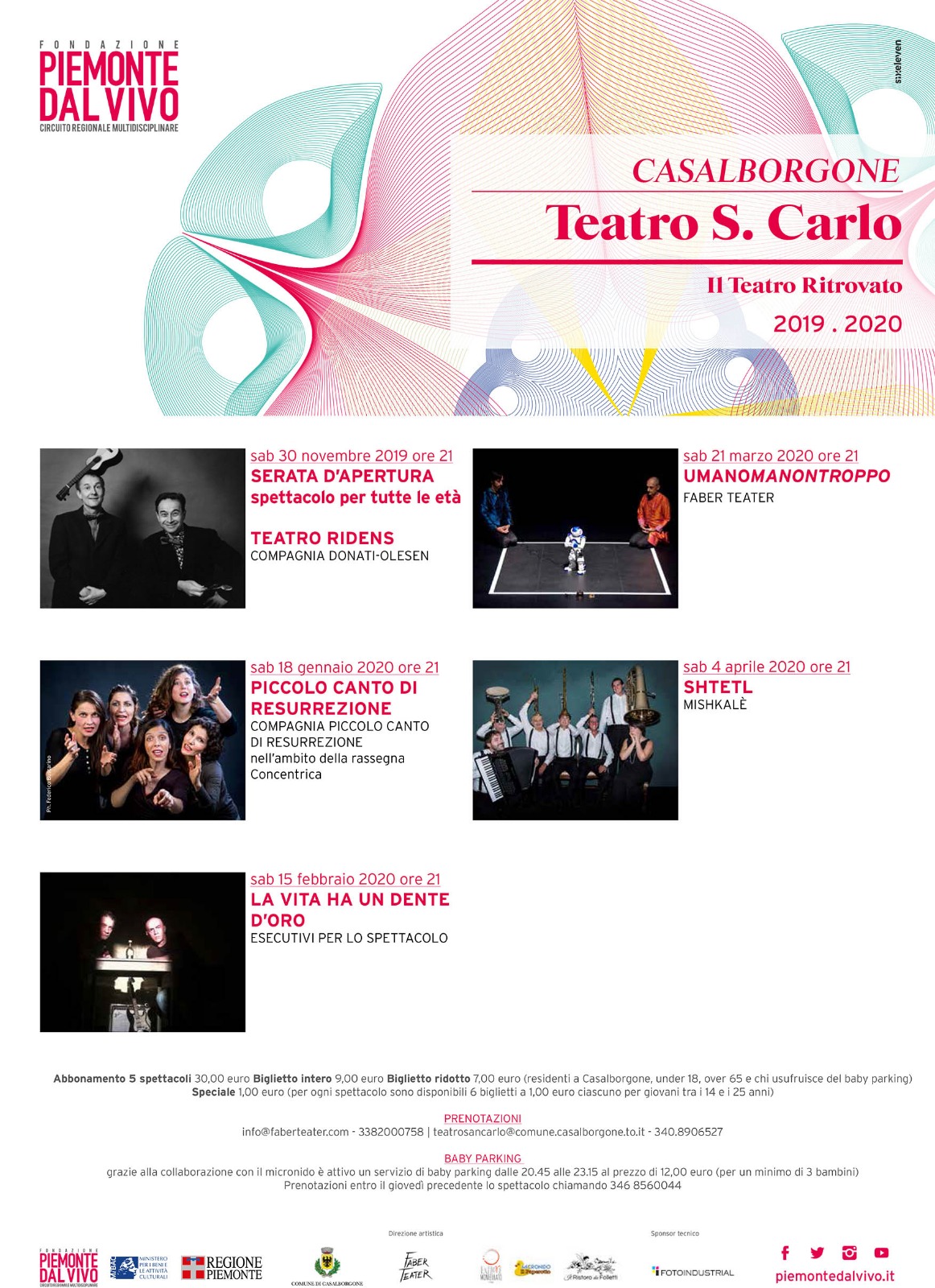 Stagione Teatrale 2019-2020 Al Teatro San Carlo di Casalborgone
