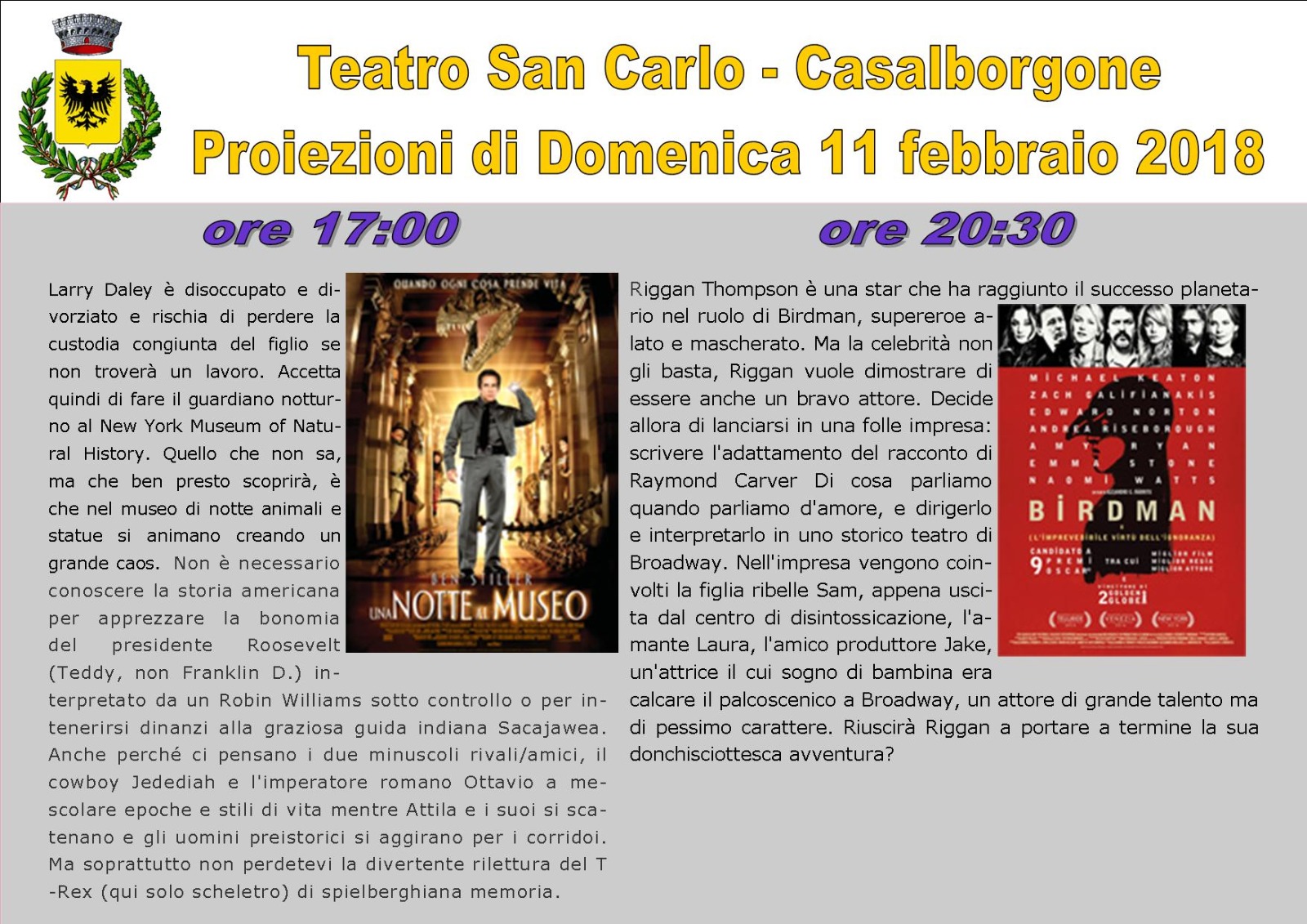 ALTRO APPUNTAMENTO CINEMATOGRAFICO PRESSO IL TEATRO SAN CARLO: