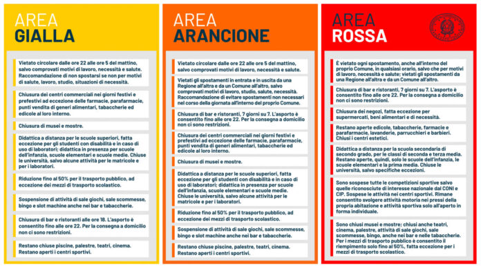 Pertanto, oltre alle restrizioni di carattere nazionale, si applicano misure più stringenti e specifiche, illustrate per sintesi nell'infografica prodotta da ANCI.