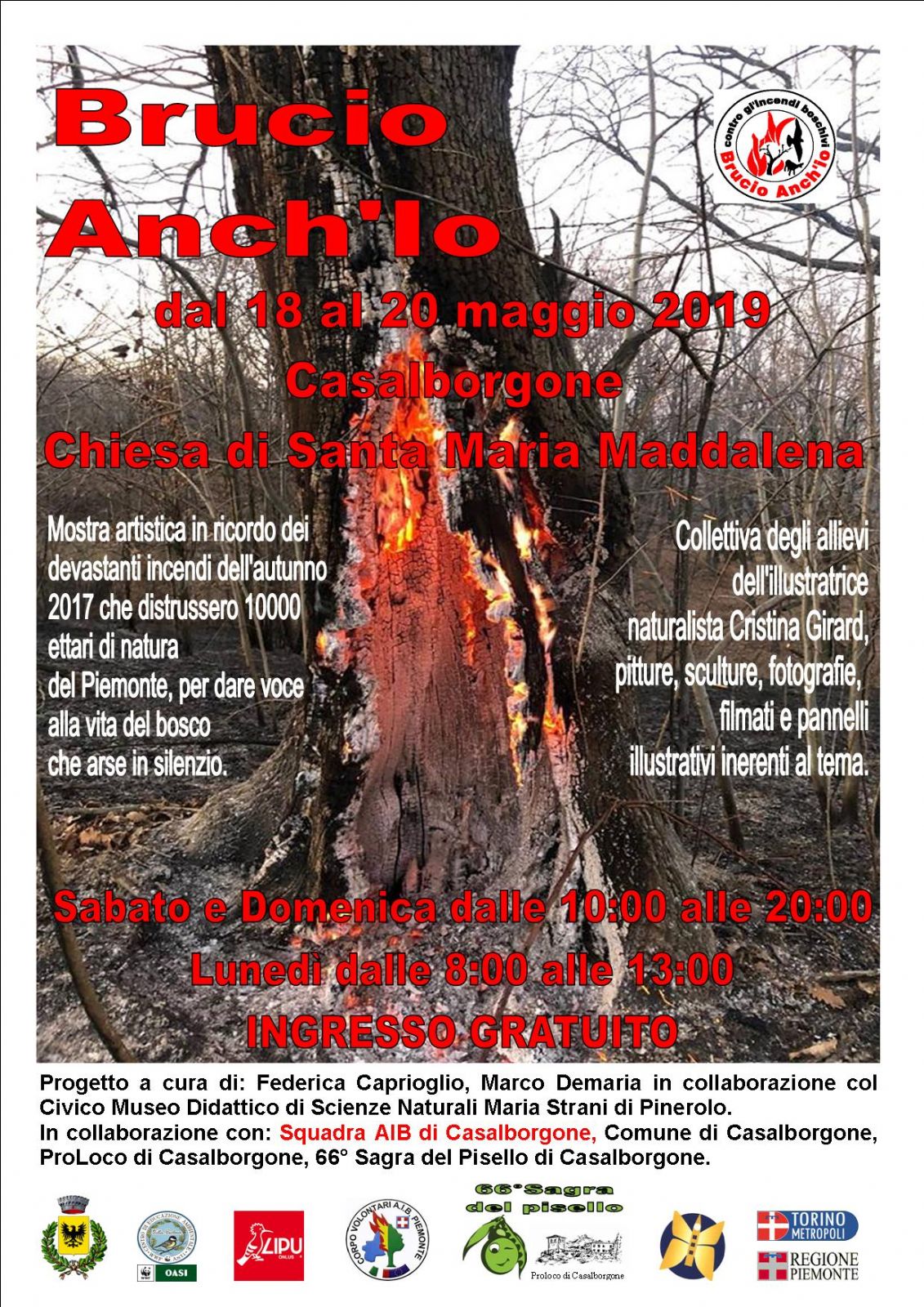 Mostra artistica in ricordo dei devastanti incendi dell'autunno 2017 che distrussero 10000 ettari di natura del Piemonte, per dare voce alla vita del bosco che arse in silenzio. Collettiva degli allievi dell'illustratrice naturalista Cristina Girard, pitture, sculture, fotografie, filmati e pannelli illustrativi inerenti al tema.
