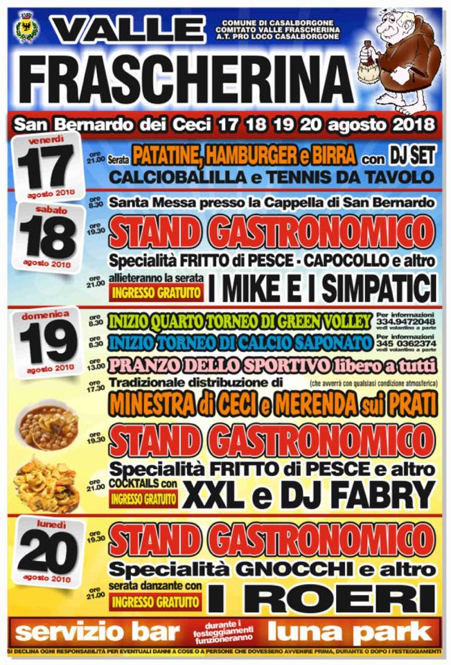 Anche quest’anno, come da tradizione, l’edizione 2018 della Festa della Valle Frascherina ci proporrà la secolare distribuzione dei Ceci nel pomeriggio di domenica 19 agosto.