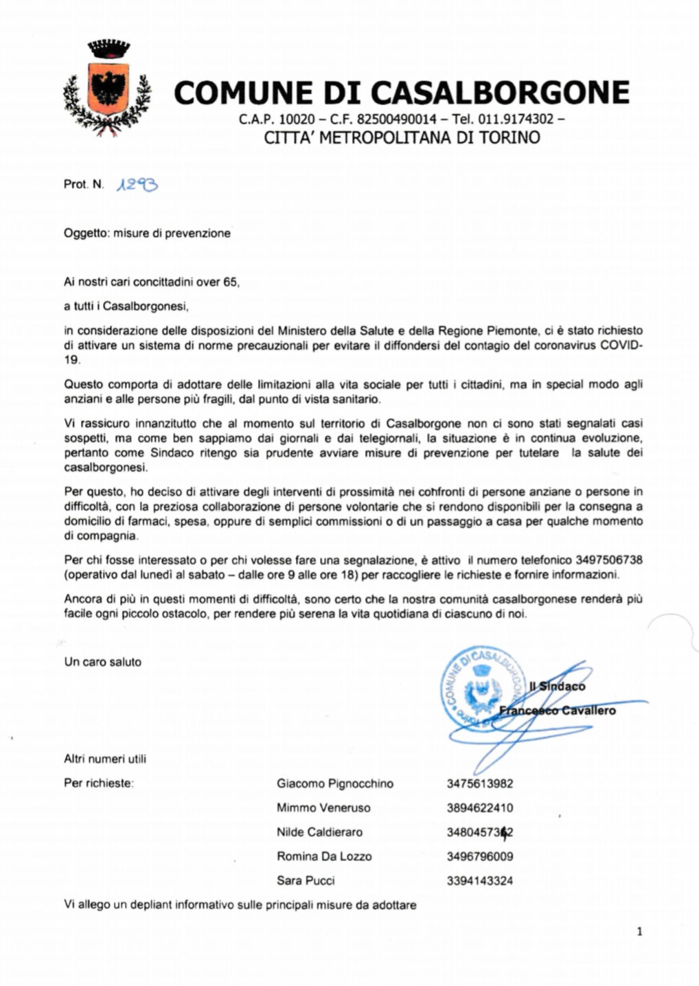 Questo comporta di adottare delle limitazioni alla vita sociale per tutti i cittadini, ma in special modo agli anziani e alle persone più fragili, dal punto di vista sanitario, Vi rassicuro innanzitutto che al momento sul territorio di Casalborgone non ci sono stati segnalati casi sospetti, ma come ben sappiamo dai giornali e dai telegiornali, la situazione è in continua evoluzione, pertanto come Sindaco ritengo sia prudente avviare misure di prevenzione per tutelare la salute dei casalborgonesi.