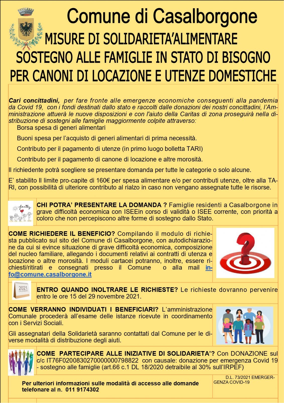 Si invitano i cittadini in stato di bisogno a presentare la domanda per misure di sostegno per solidarietà alimentare e per utenze/canoni domestici entro il 29 novembre 2021.