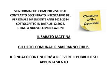 AVVISO ATTIVITA' LIMITATA DEGLI UFFICI COMUNALI